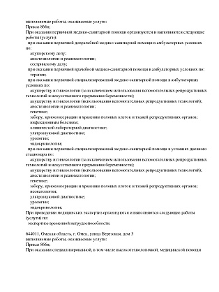 Спектр оказываемых услуг ООО «Омский центр репродуктивной медицины»: